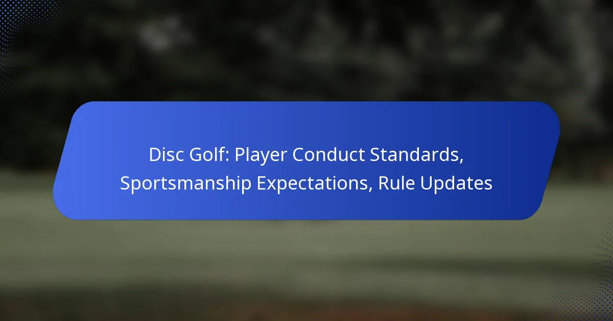 In disc golf, player conduct standards are essential for fostering respect, sportsmanship, and adherence to course rules, ensuring a positive experience for everyone involved. Sportsmanship emphasizes integrity, fair play, and respect for opponents, creating a supportive environment that encourages camaraderie. Recent rule updates aim to clarify regulations and introduce new standards that enhance player conduct, ultimately improving the overall experience for both players and spectators.