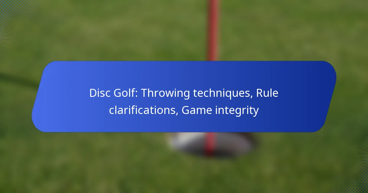 Disc golf combines skill and strategy, requiring players to master various throwing techniques such as backhand, forehand, and overhand to optimize their performance. Understanding the rules is essential for maintaining fair play and sportsmanship, while upholding game integrity fosters a positive atmosphere among players. Together, these elements contribute to an enjoyable and competitive experience in the sport.