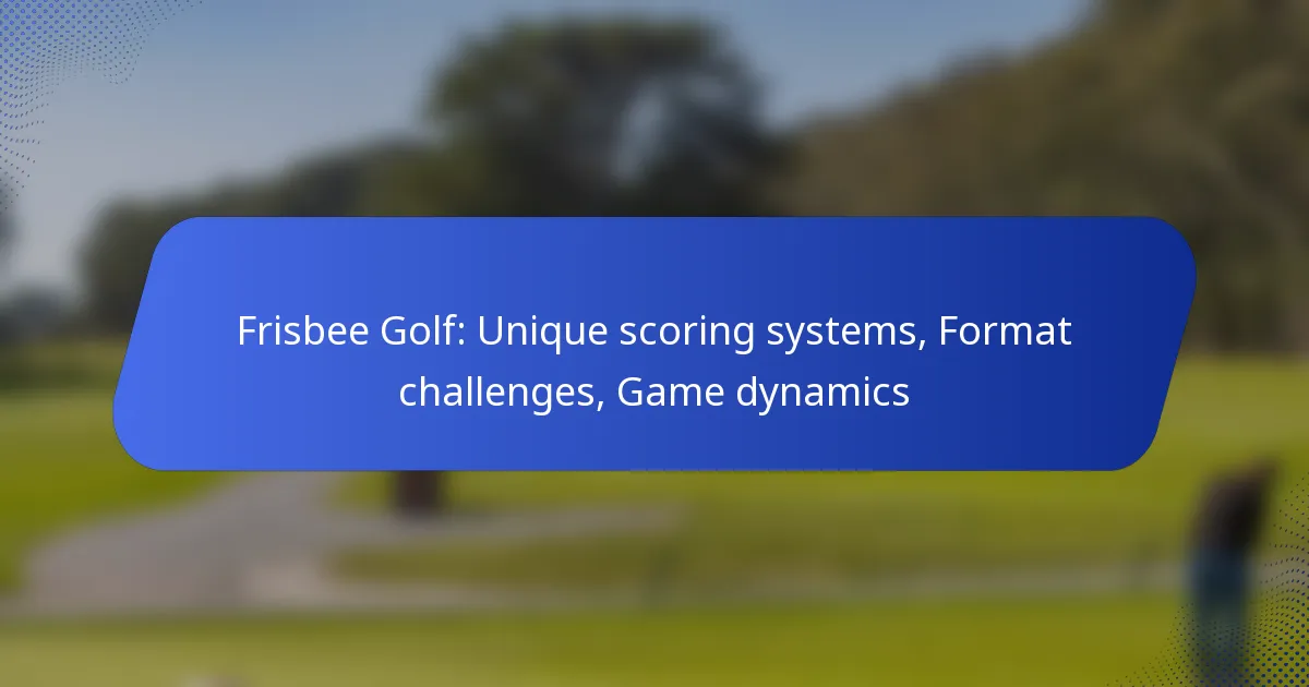 Frisbee golf is a dynamic sport that incorporates unique scoring systems, which can greatly influence gameplay and strategy. With various formats and rules that differ between casual and tournament play, players must navigate challenges that arise from course design and environmental factors. Understanding these elements is essential for enhancing both competitive play and overall enjoyment of the game.